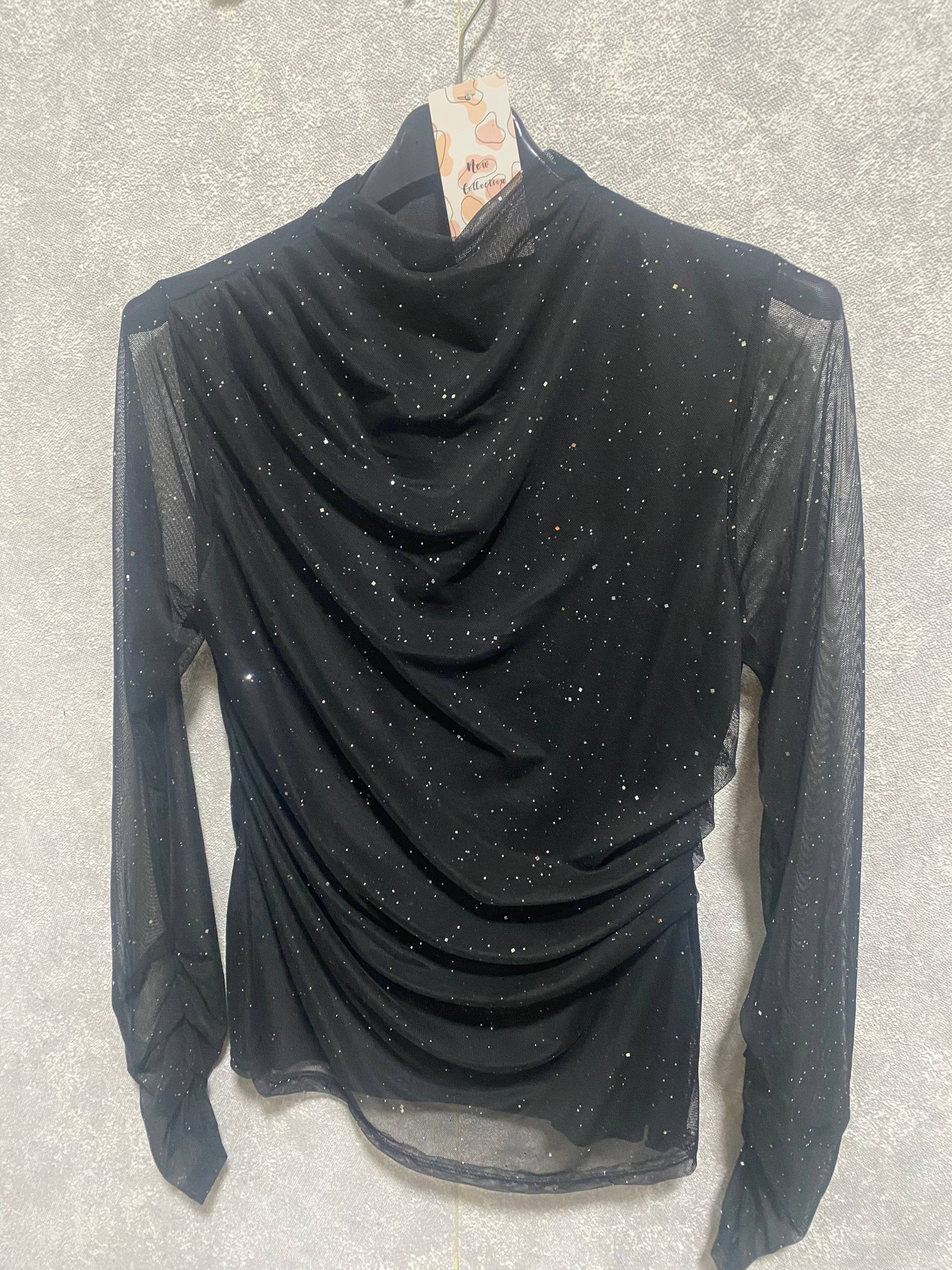 Элегантный лонгслив из мерцающей сетки