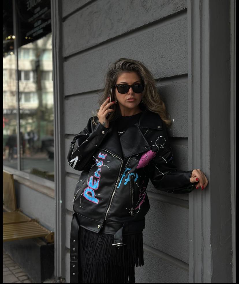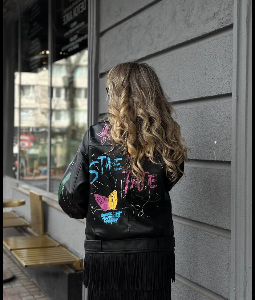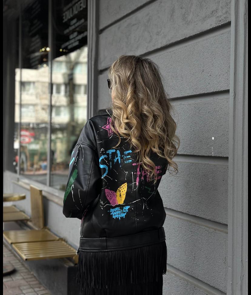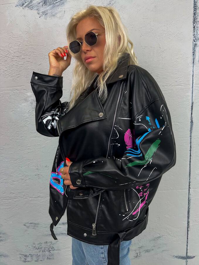 Эффектная и дерзкая женская куртка, которая сразу привлекает внимание. Яркий цветной принт подчёркивает индивидуальность и делает образ стильным и запоминающимся.