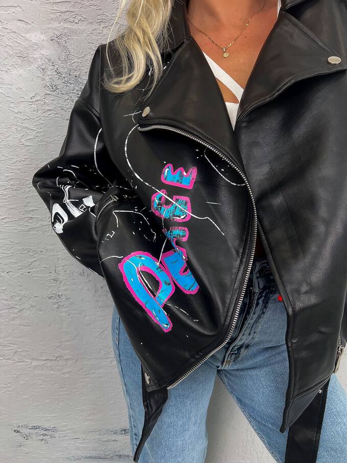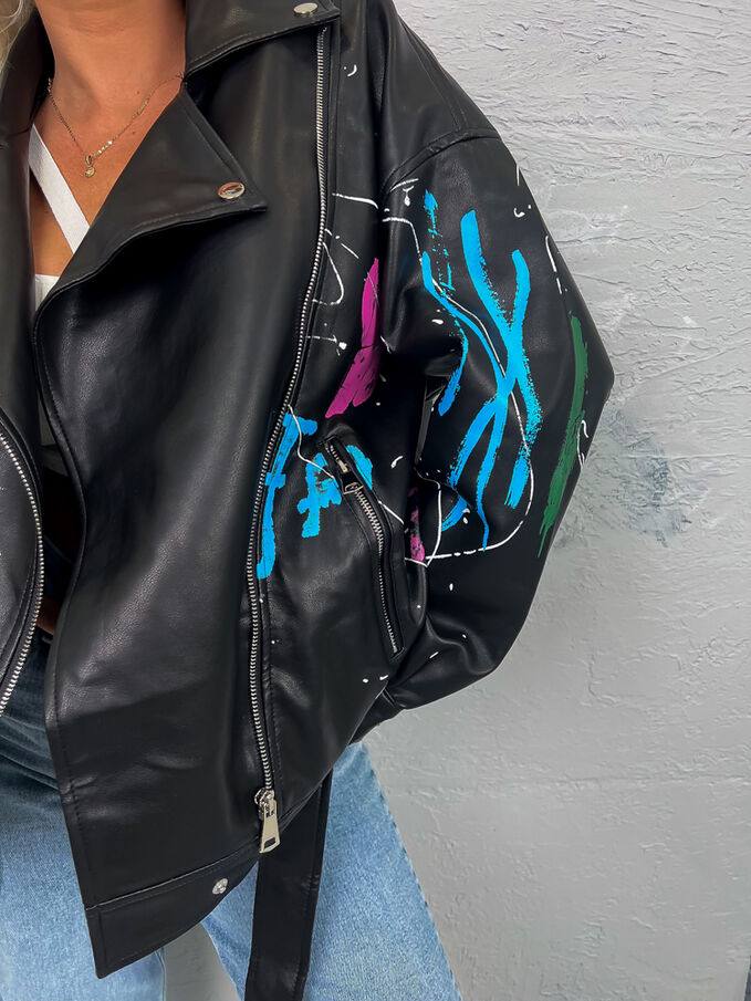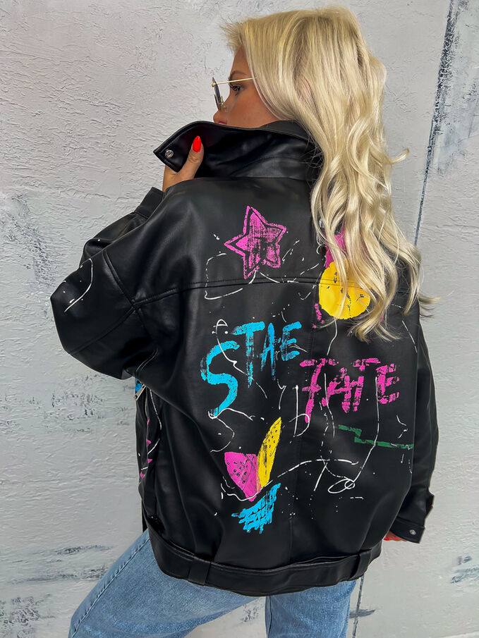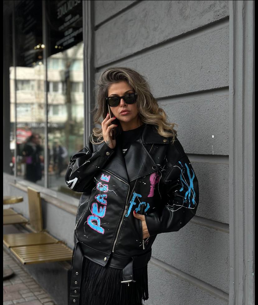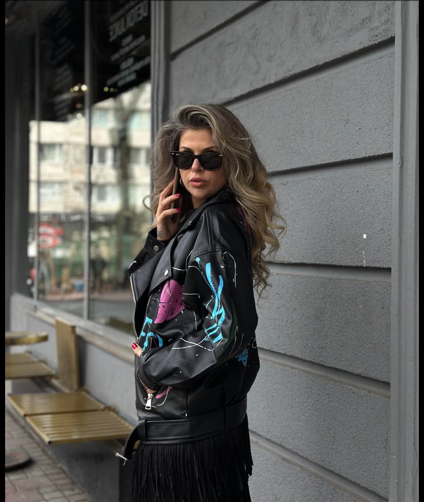 Эффектная и дерзкая женская куртка, которая сразу привлекает внимание. Яркий цветной принт подчёркивает индивидуальность и делает образ стильным и запоминающимся.