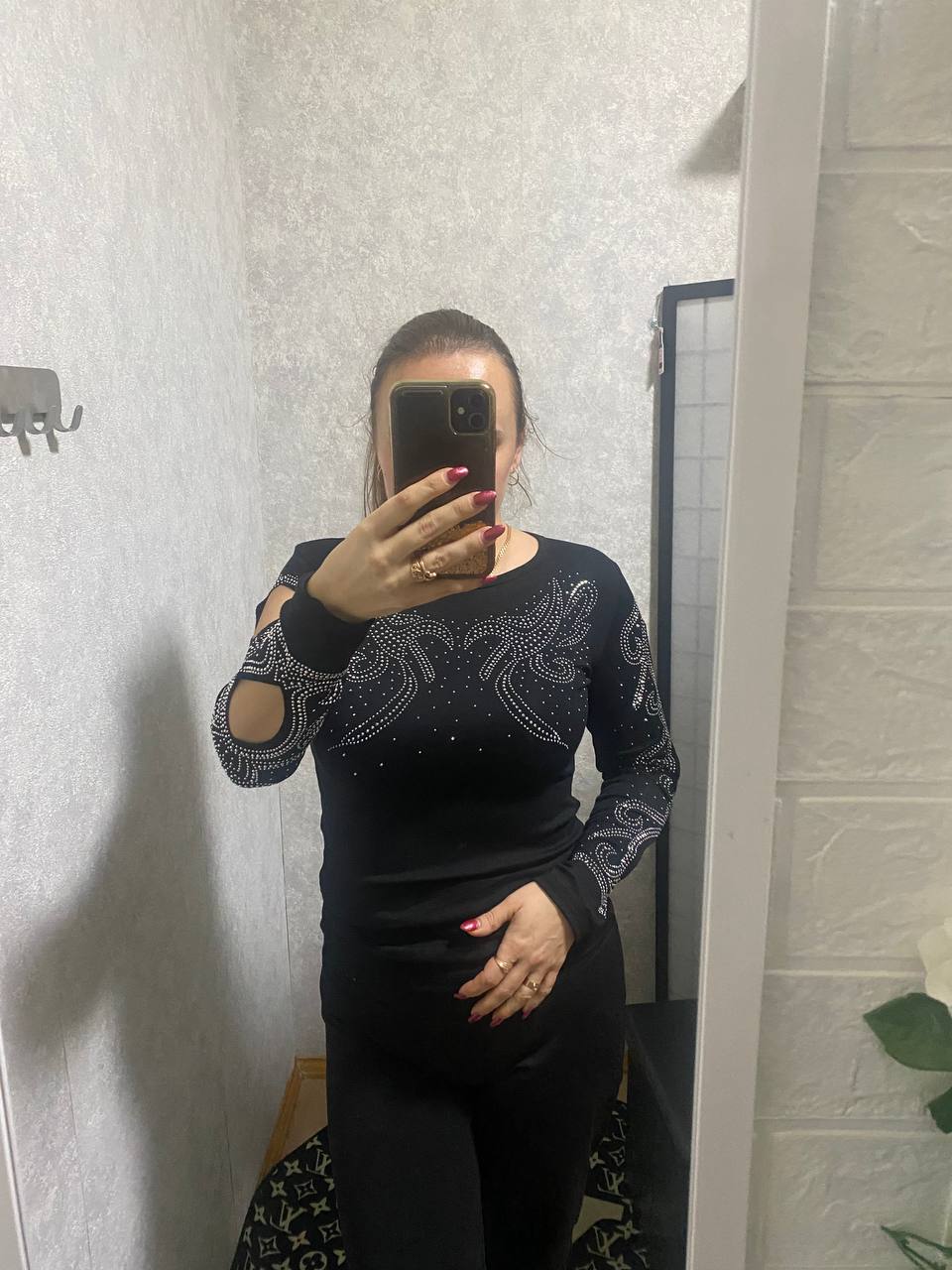 Стильная женская кофта с эффектным декором из страз. Облегающий крой подчёркивает фигуру, вырезы на рукавах добавляют изюминку образу. Отлично подойдёт для вечерних выходов и стильных повседневных образов.